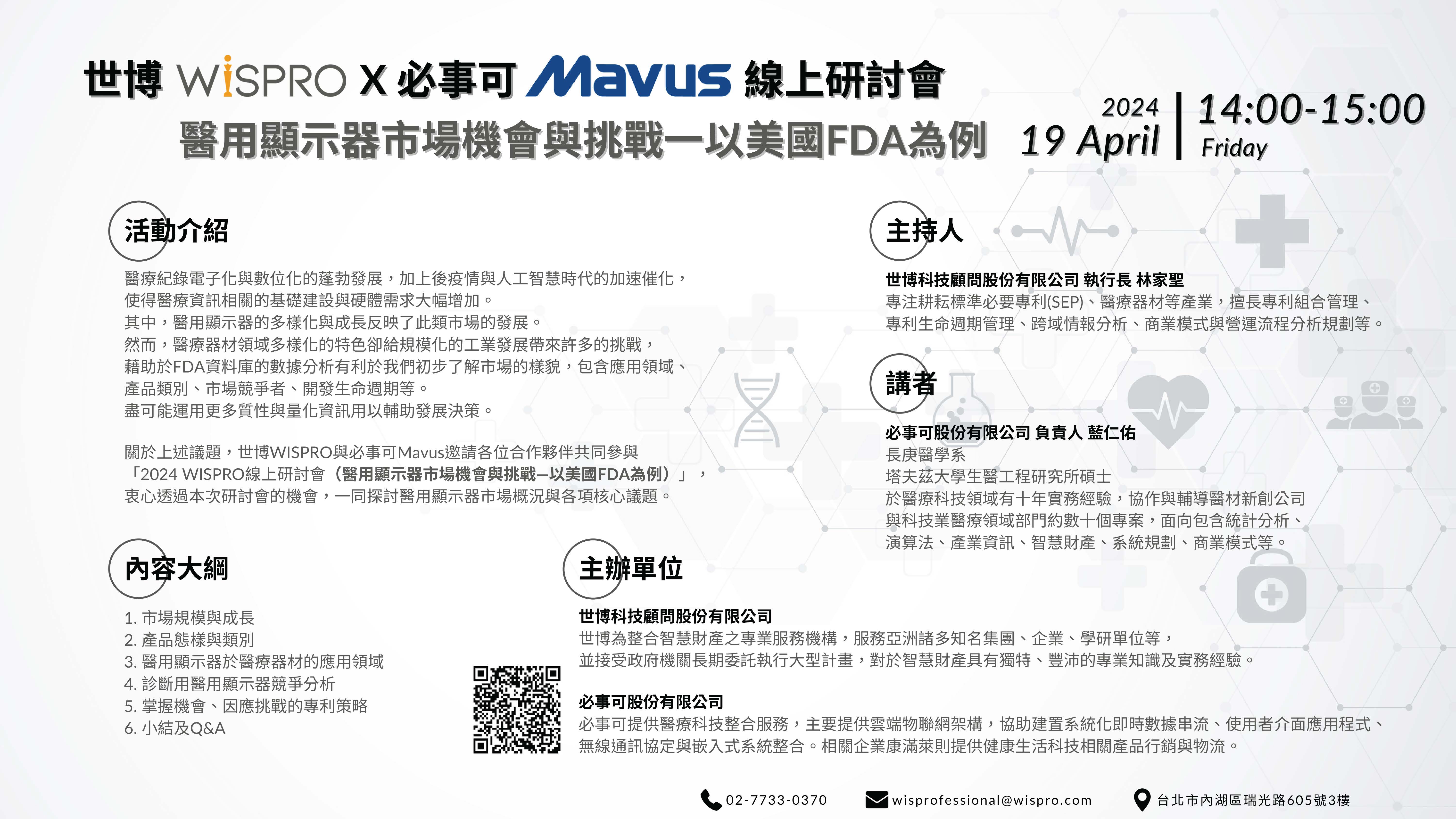 (代發活動訊息) 【4/19線上研討會】醫用顯示器市場機會與挑戰一以美國FDA為例