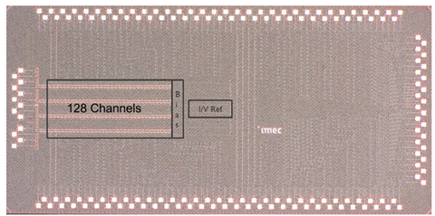 Die photo of the 128-channel fabricated readout IC