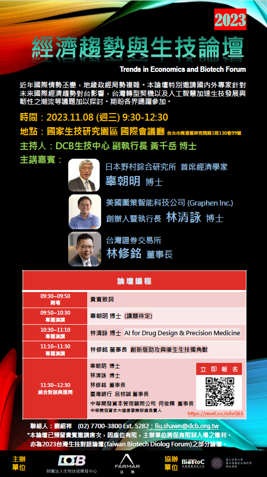 以下轉發【2023經濟趨勢與生技論壇】相關活動資訊。