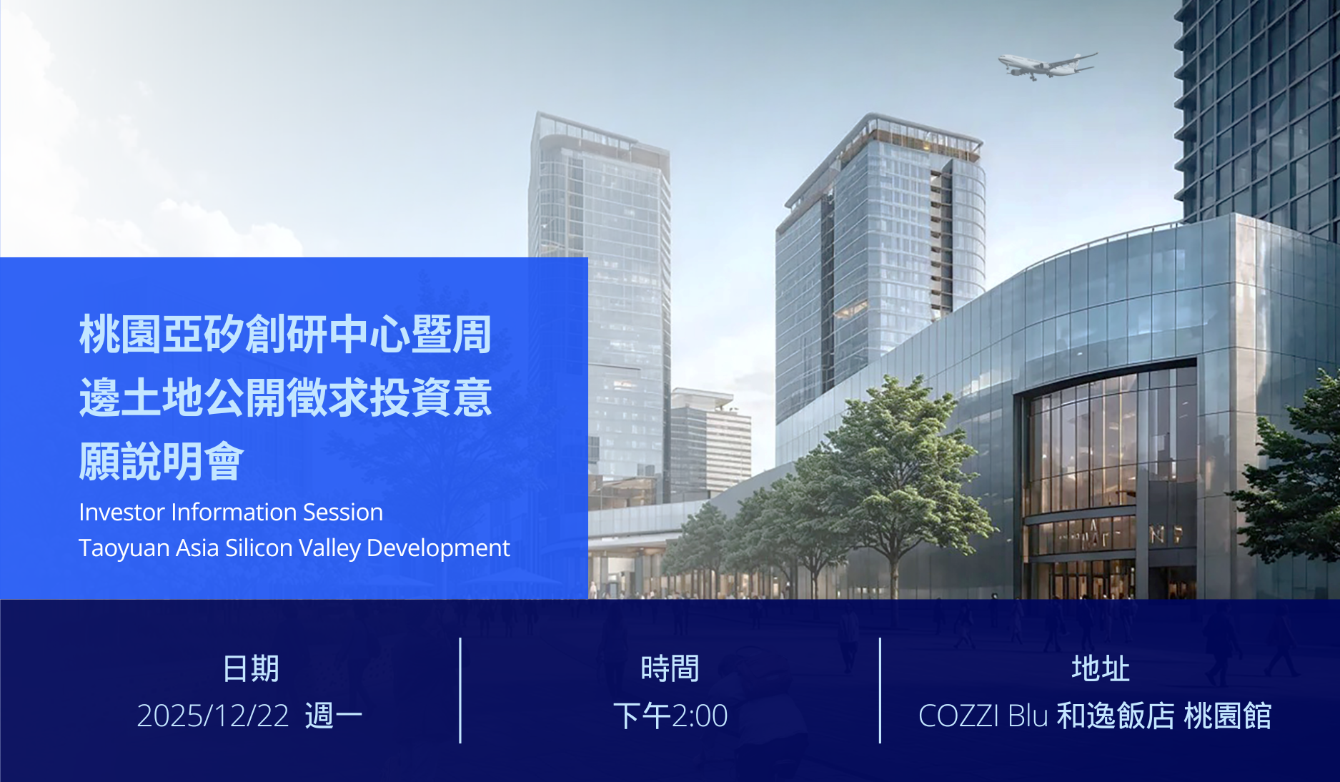 114年12月22日將於和逸飯店桃園館辦理公開徵求投資意願說明會,分享對開發時程、空間規模、設施需求及營運模式的想法。