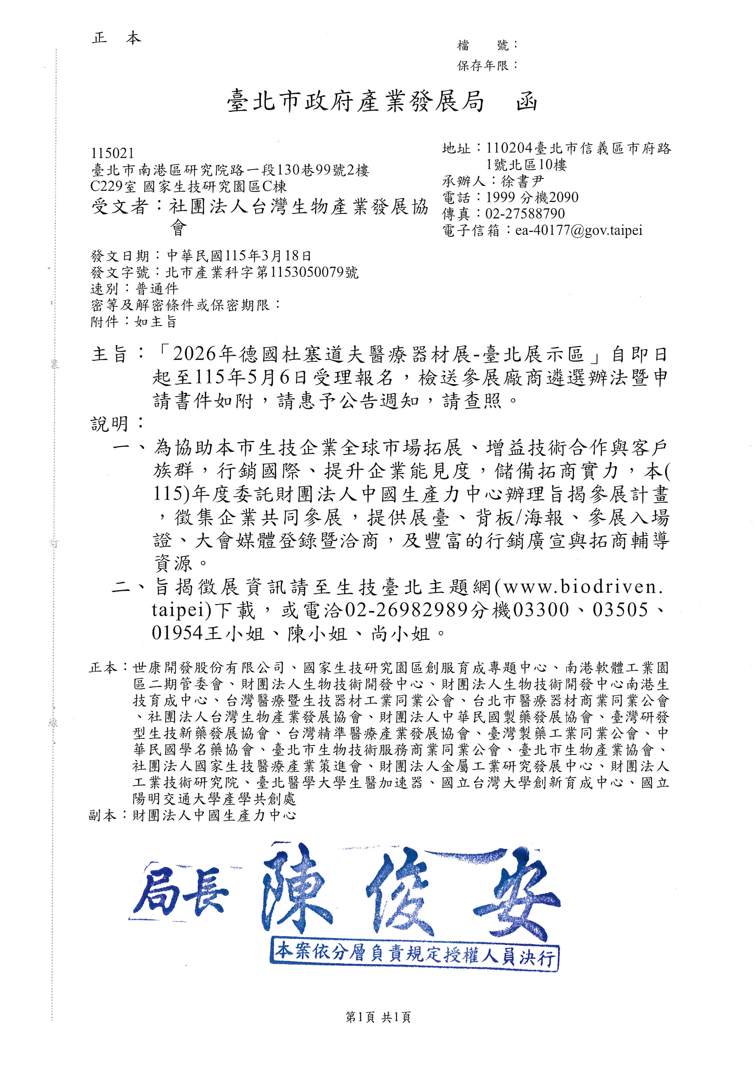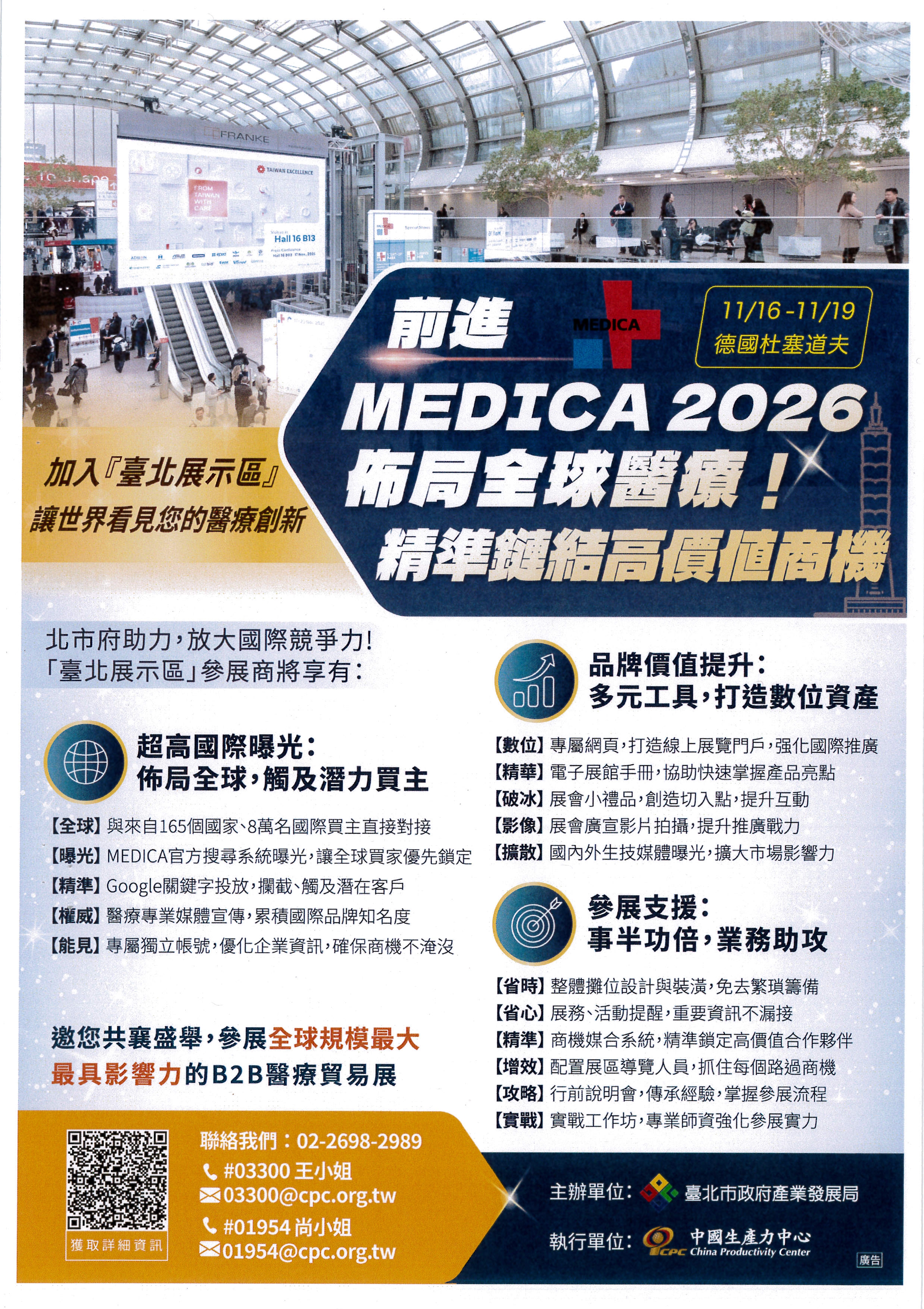 【轉發訊息】台北市產業發展局_「2026年德國杜塞道夫醫療器材展(MEDICA 2026)-臺北展示區」廠商徵展公告