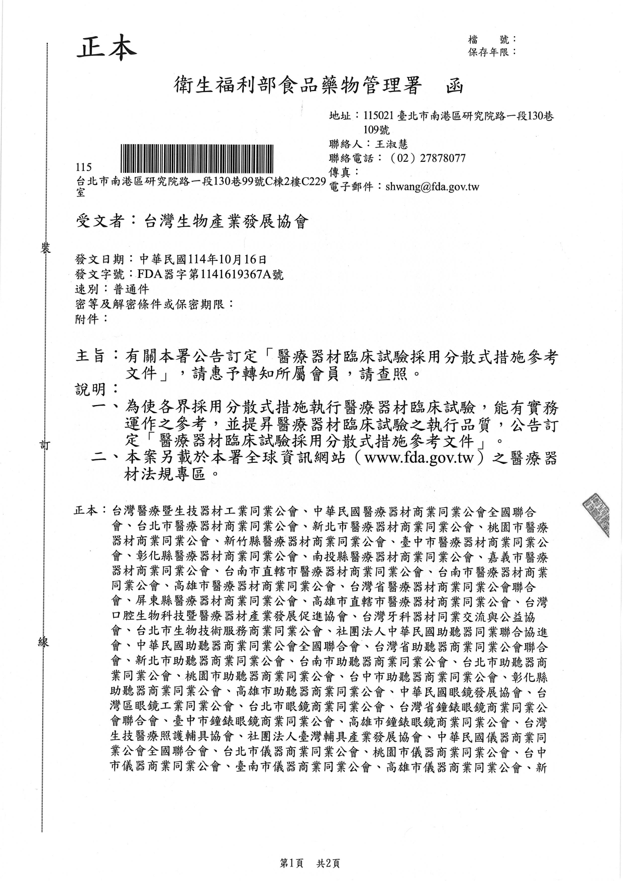 衛福部食藥署公告_醫療器材臨床試驗採用分散式措施參考文件