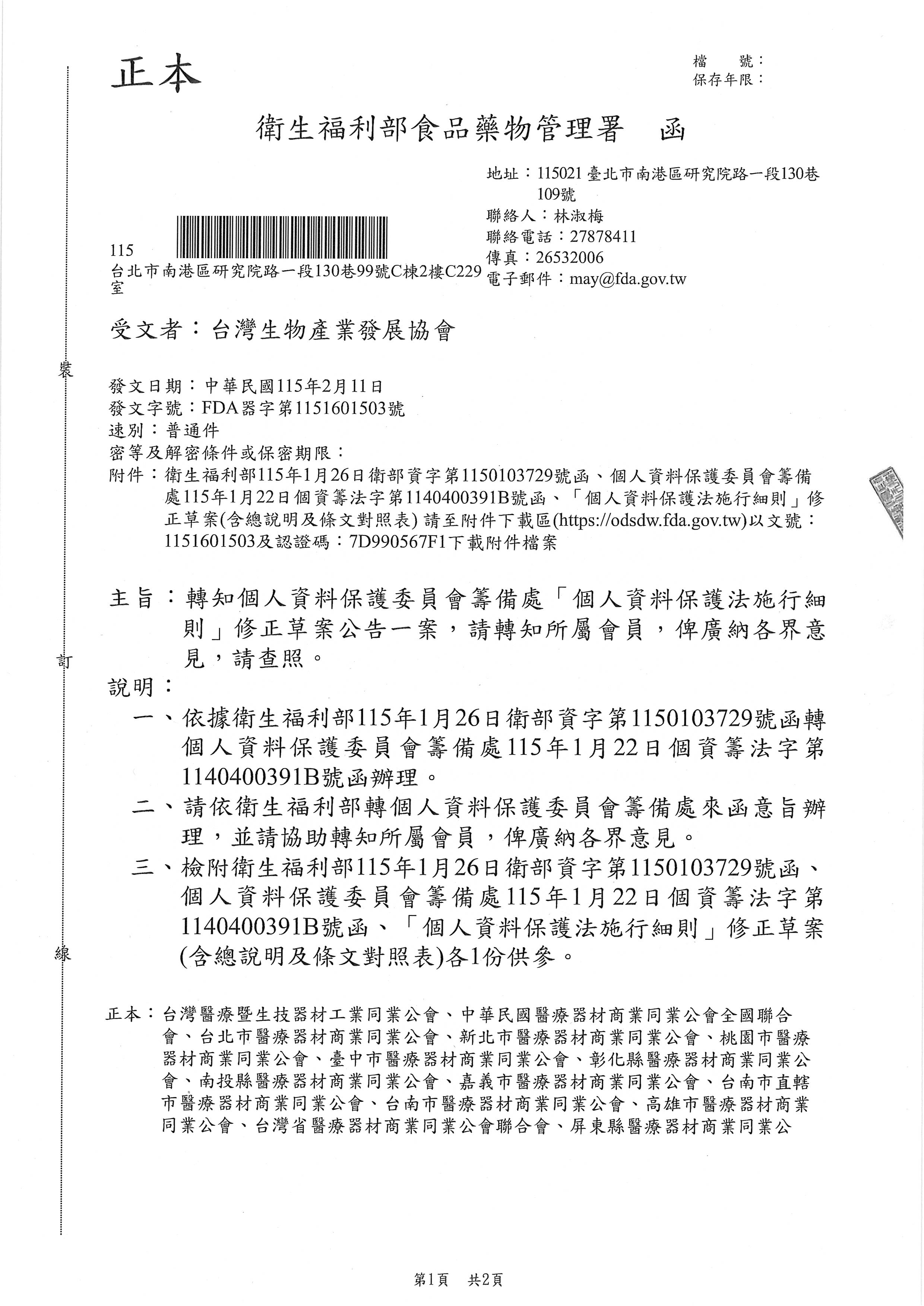 衛福部食藥署公告_轉知個人資料保護委員會籌備處-個人資料保護法施行細則修正草案公告一案