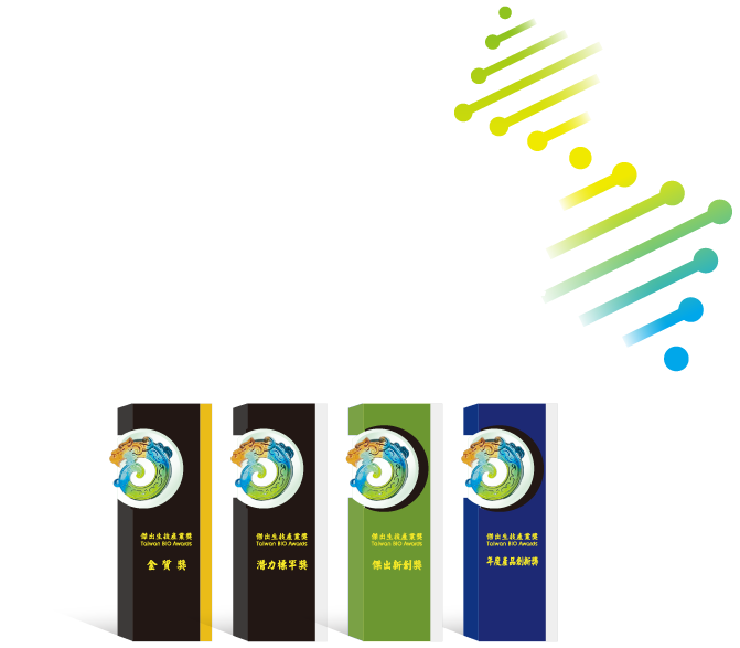 為鼓勵傑出優良生技產業及創新,生物產協每年度舉辦「Taiwan BIO Awards傑出生技產業獎」,共分為四大類獎項:「傑出生技產業金質獎」、「潛力標竿獎」、「傑出新創獎」及「年度產品創新獎」,持續表揚投入人力、資金、研發且績效卓越的生技公司或機構,期藉此帶動生技產業能量。